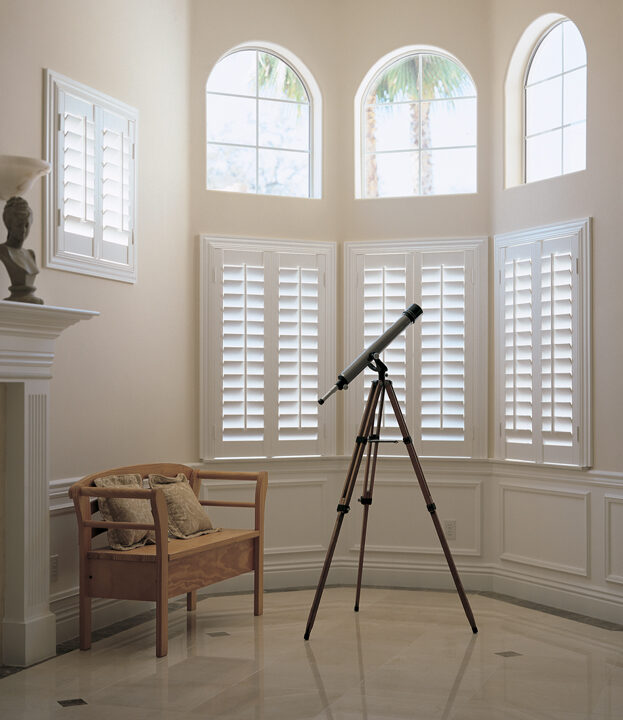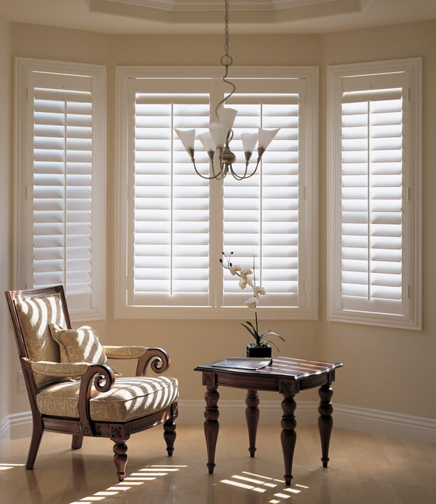 Imagine your bay windows transformed both inside and out with elegant plantation shutters. Book an appointment today to explore how bay window shutters can complete your design and bring your home to light.